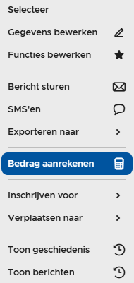 Indien je hetzelfde bedrag aan meerdere leden wil toewijzen, kan je dit in bulk doen door de verschillende leden te selecteren vooraleer je 'bedrag aanrekenen' kiest.