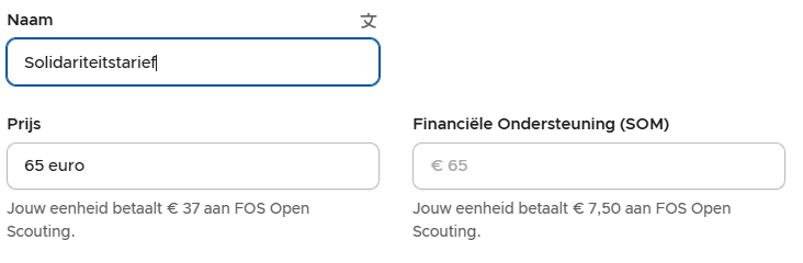 Voorbeeld: voor een activiteit georganiseerd door FOS Nationaal dat 100 EUR kost, passen we een solidariteitstarief van 106 EUR toe.